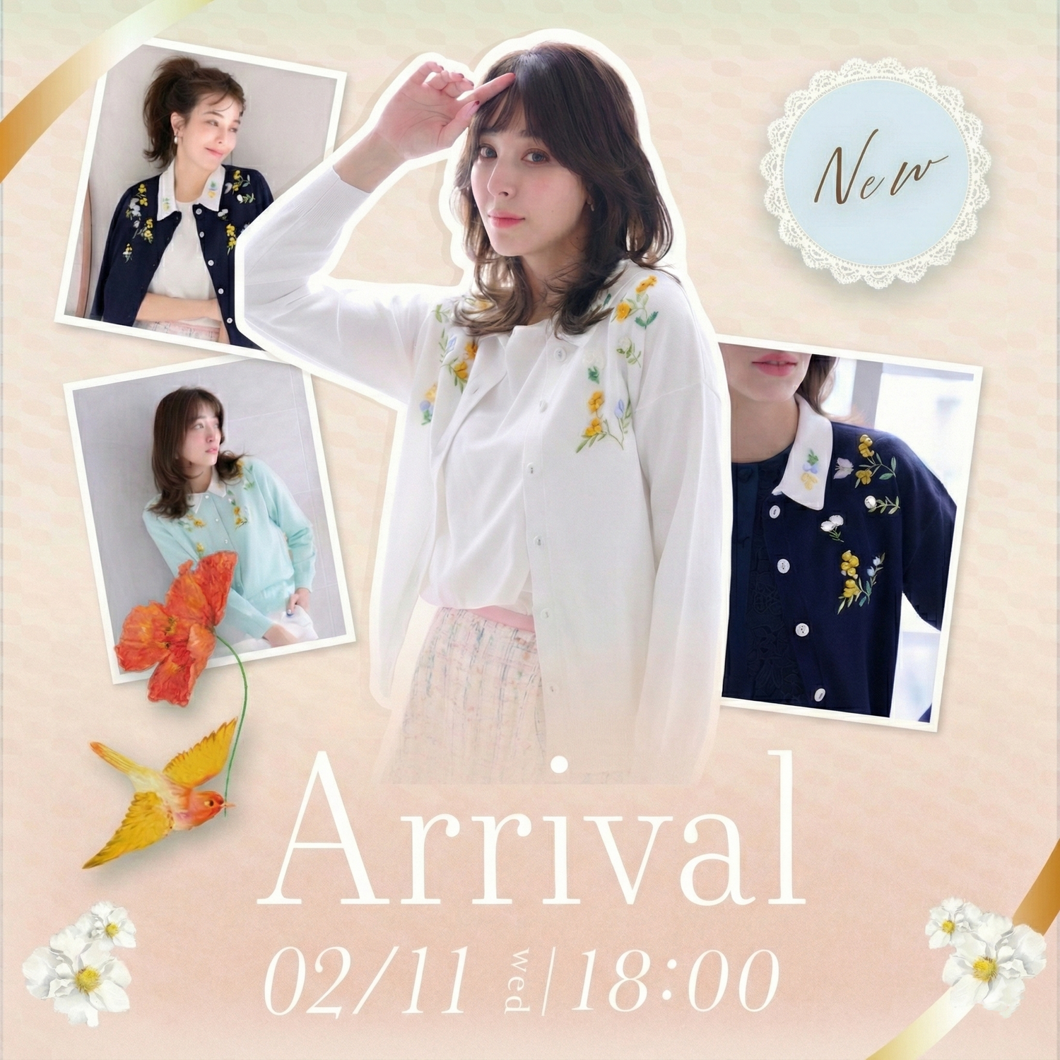 エンブロイダリーカーディガン